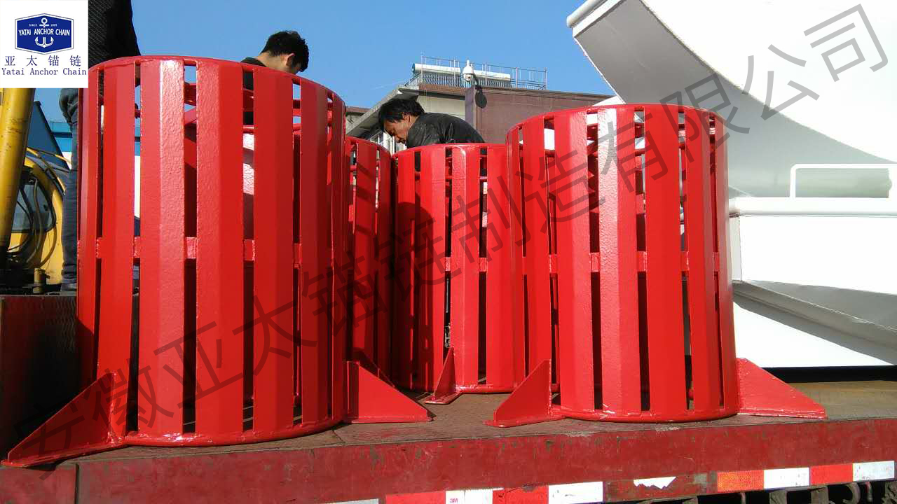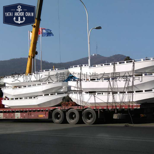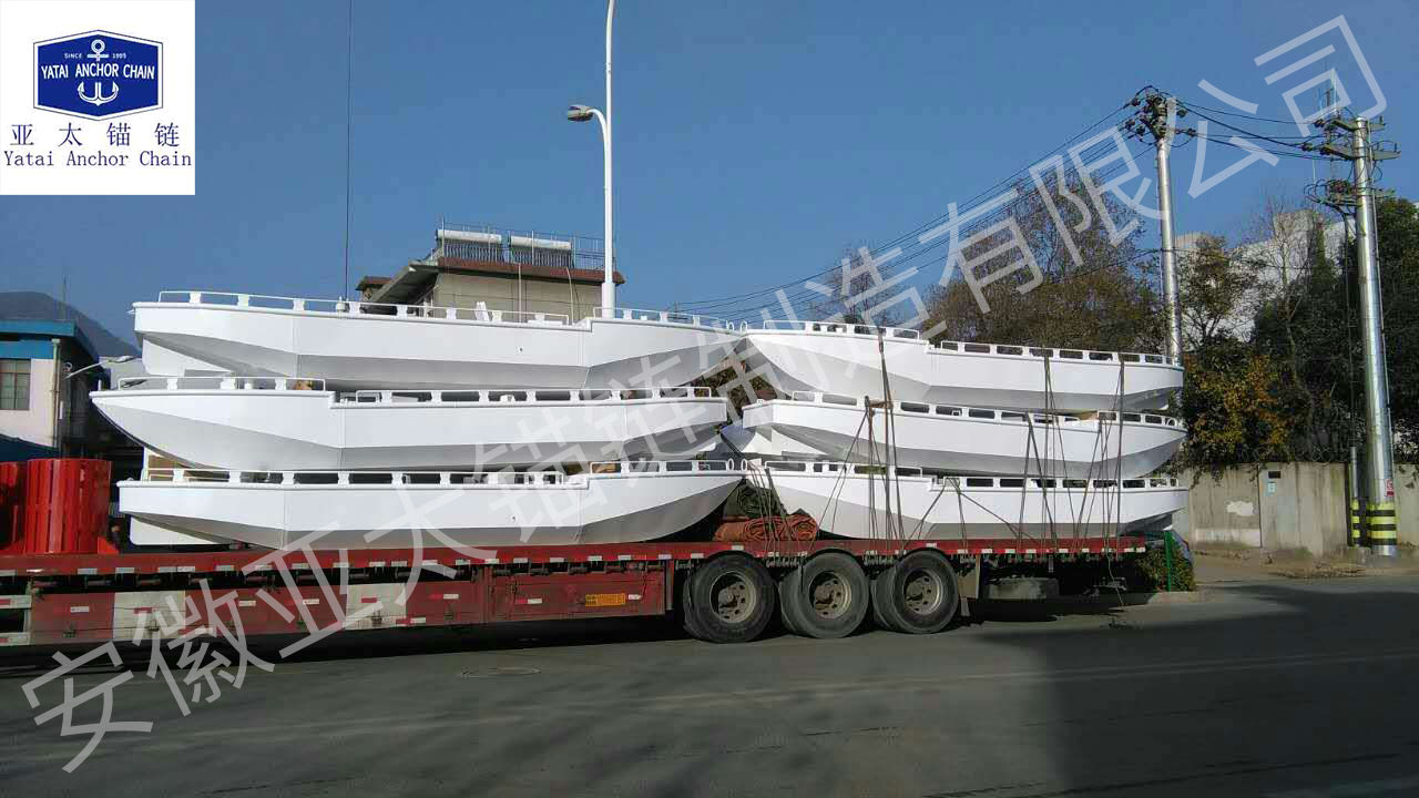 船体中间位置设有安装锚灯的灯架,所述灯架两侧旁设有数个十字桩,所述船体的头部还设有带缆桩,所述船体的两侧各设有一对系环;