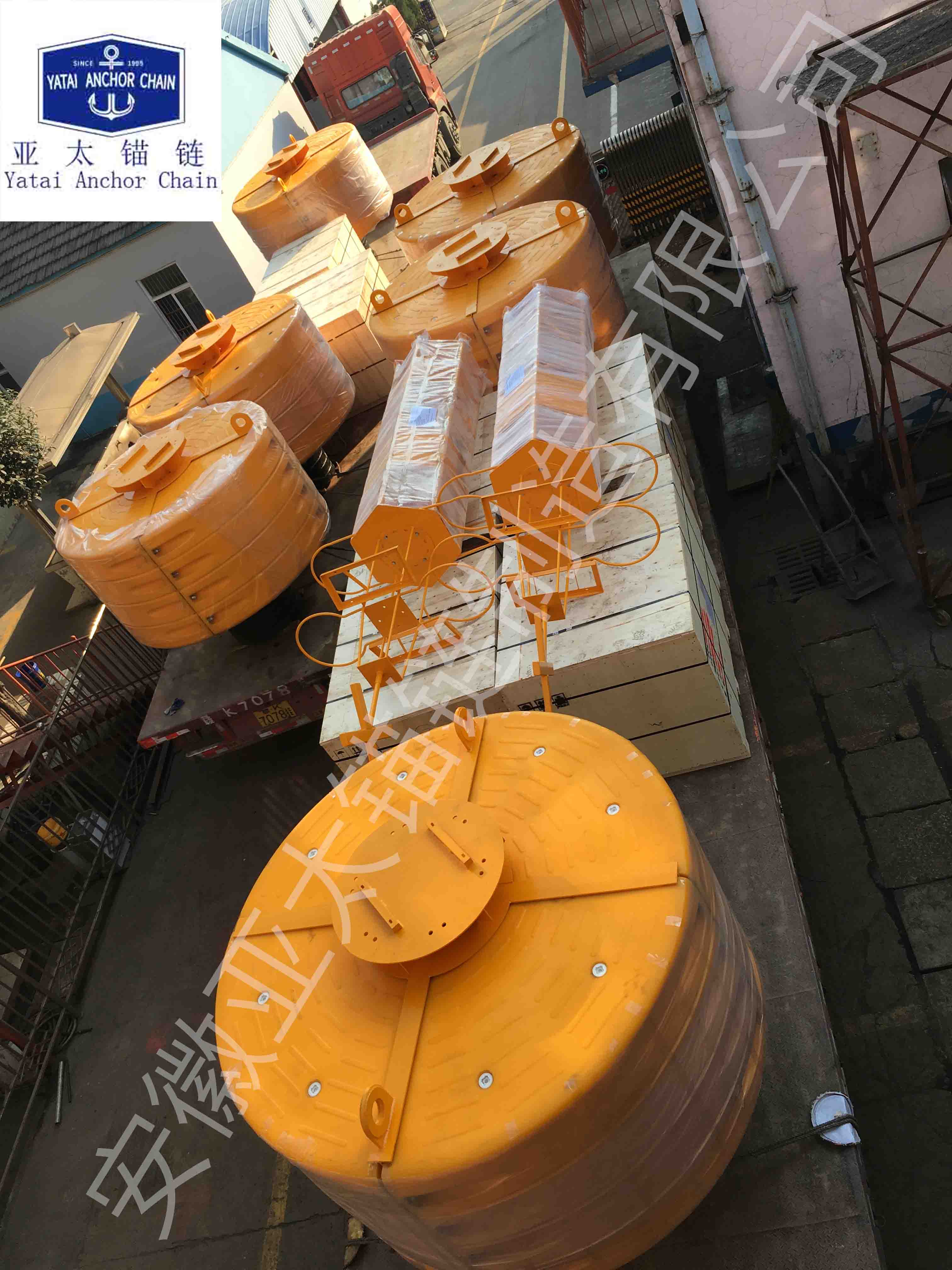 高分子聚乙烯浮标浮标是由旋转成型制造,防紫外线聚乙烯材料,内部由聚苯乙烯泡沫填充并用不锈钢结构加强。要求的颜色色素要在塑造之前注射到聚乙烯材料里面。这样会延长浮标表面颜色的寿命并且不需要喷漆。和钢制浮标比起来,聚乙烯浮标更轻(便于安装),还具有防碰撞的特性。而且由于具有弹性的属性,可以吸收撞击力并抵挡相对更强的撞击。这种浮标同样也是免维护并具有更长的使用寿命。
