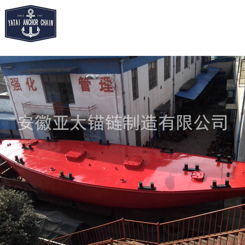 船体中间位置设有安装锚灯的灯架,所述灯架两侧旁设有数个十字桩,所述船体的头部还设有带缆桩,所述船体的两侧各设有一对系环;